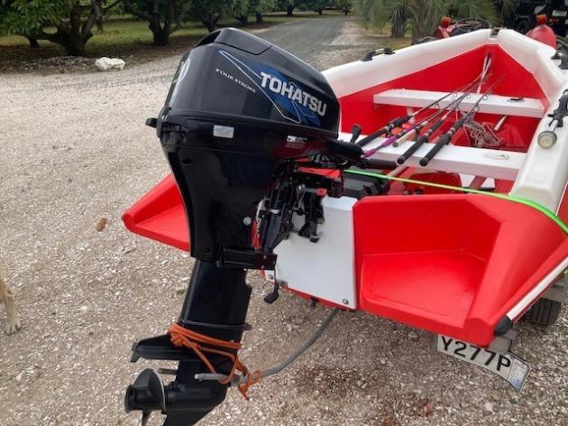 MAC 360 2014 20HP TOHATSU 4 STROKE LOW HOURS USED LAKE KARAPIRO OFTEN . LOWRANCE DEPTH SOUNDER ,NUMEROUS ROD HOLDERS,JUST SERVICED, ROAD KING TRAILER ,OARS, ANCHOR , LIFE JACKETS ,NEW 12 VOLT BATTERY FOR NAV LIGHTS AND RIDING LIGHT , NEW REGO AND WARRANT SITUATED IN WHANGAMATA JOHN 021455960 |